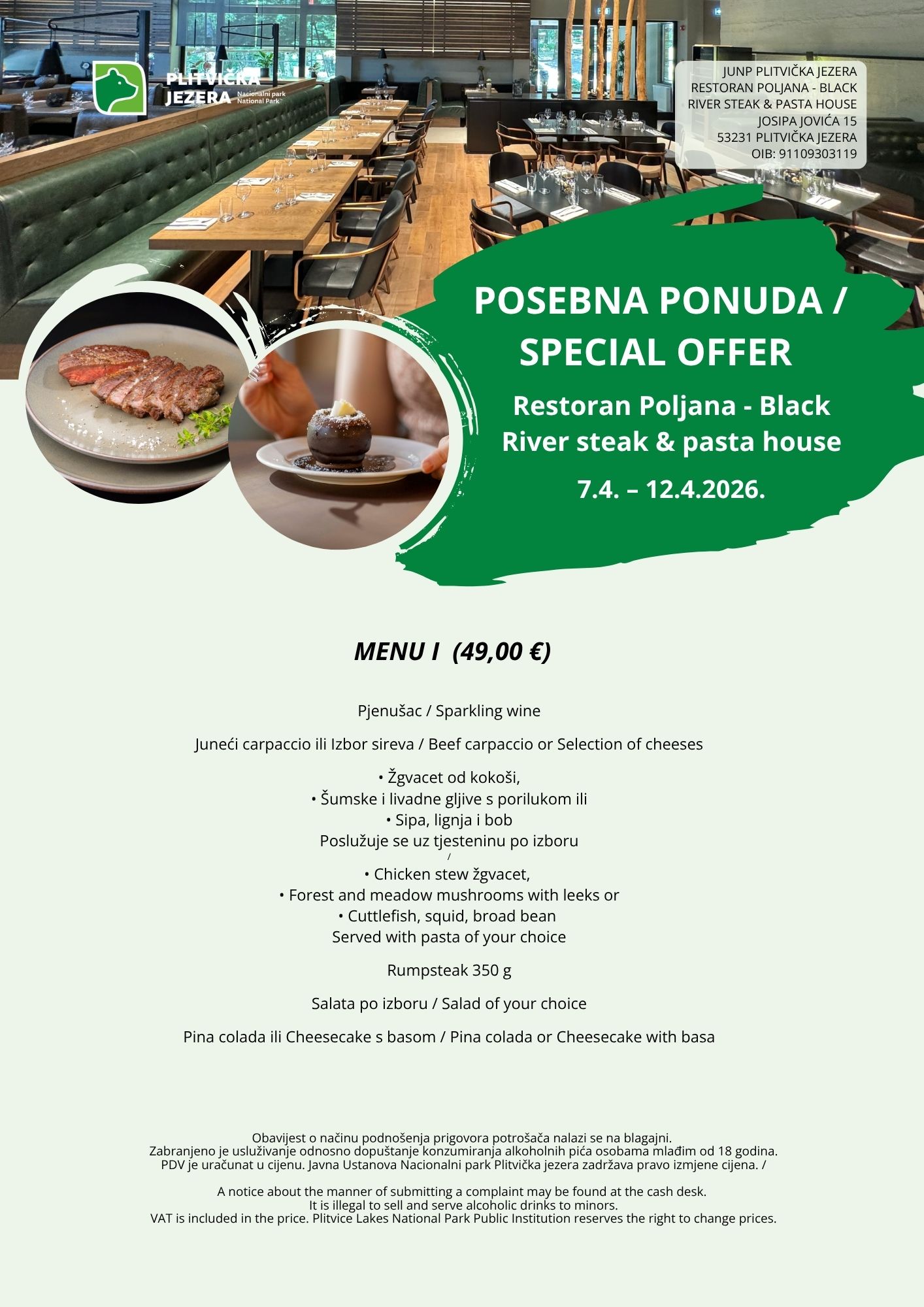 In the heart of the largest and oldest Plitvice Lakes National Park, where nature offers its most magnificent scenes, Restaurant Poljana – Black River has located. Inspired by the beauty of the Black River, Black River provides a unique experience that combines natural beauty with top-notch gastronomy. With an innovative menu and a modern approach, this restaurant is sure to become a favorite destination for all lovers of fine food and nature.