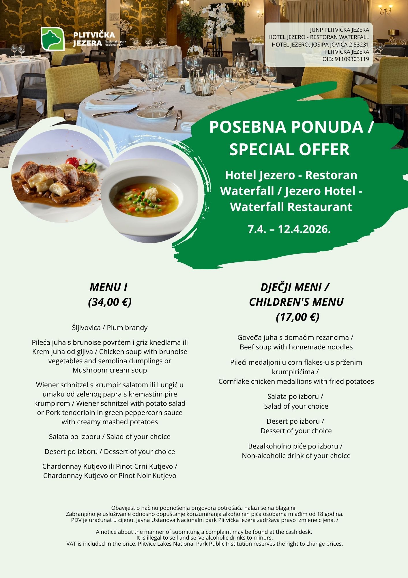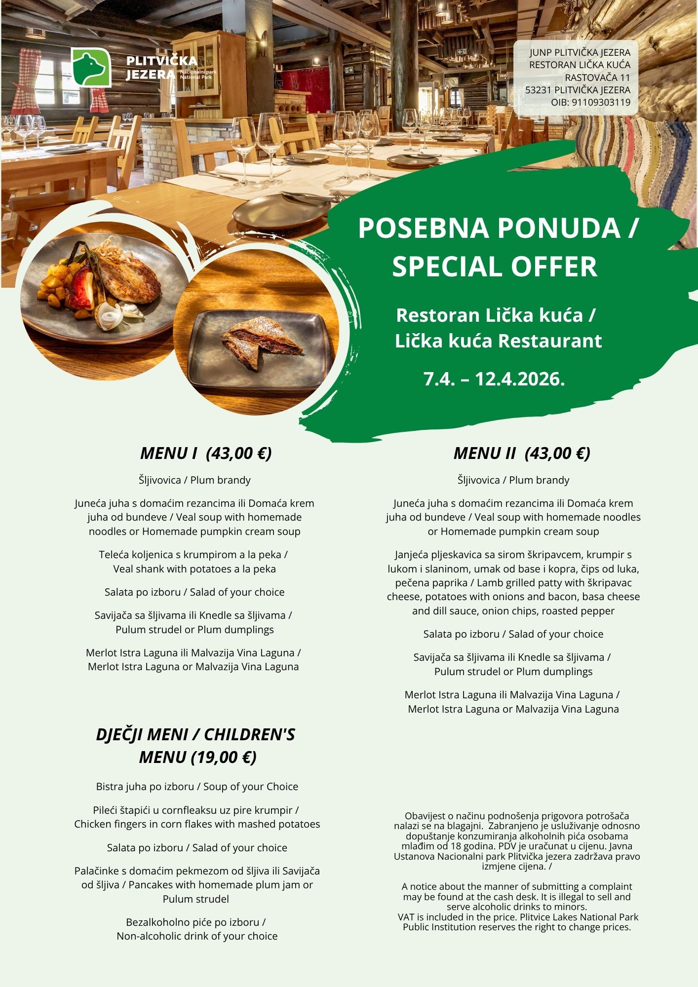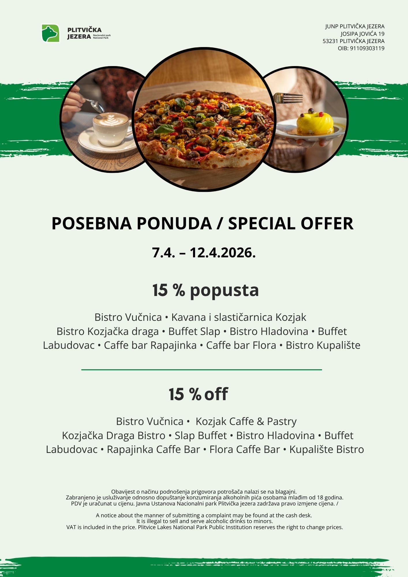 As every year, we have prepared special ticket prices for the promotional week. You will have the opportunity to experience all 16 emerald lakes at reasonable prices at the moment when nature wakes up from its winter slumber in a special atmosphere — the forest becomes lusher and the dazzling array of colours is enchanting. In addition to lower ticket prices, visitors will also enjoy a special gastronomic offer with promotional discounts. Our restaurants will prepare a variety of dishes made from local ingredients, many of which are holders of the regional quality system Lika Quality, which further highlights the authenticity and richness of Lika gastronomy.