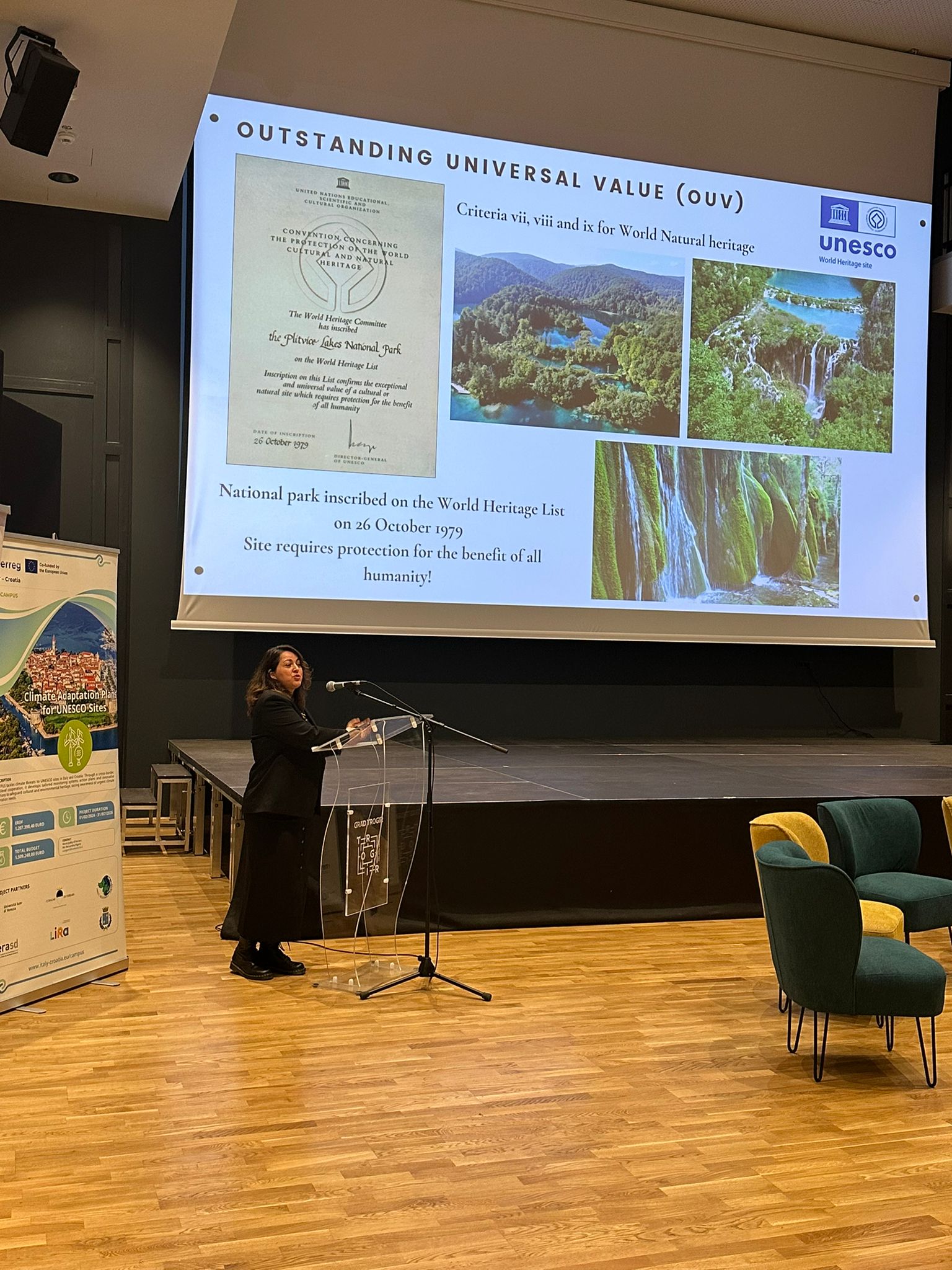In the city of Trogir, a UNESCO cultural heritage site, an international conference entitled “Climate change and heritage: challenges and responses in coastal and protected areas” was held on October 20, 2025. The conference is part of the project activities of the project CAMPUS – Climate Change Adaptation Plans for UNESCO sites, which is implemented from the cross-border cooperation program Interreg Italy-Croatia 2021-2027, and in which the Plitvice Lakes National Park participates as an associated partner.