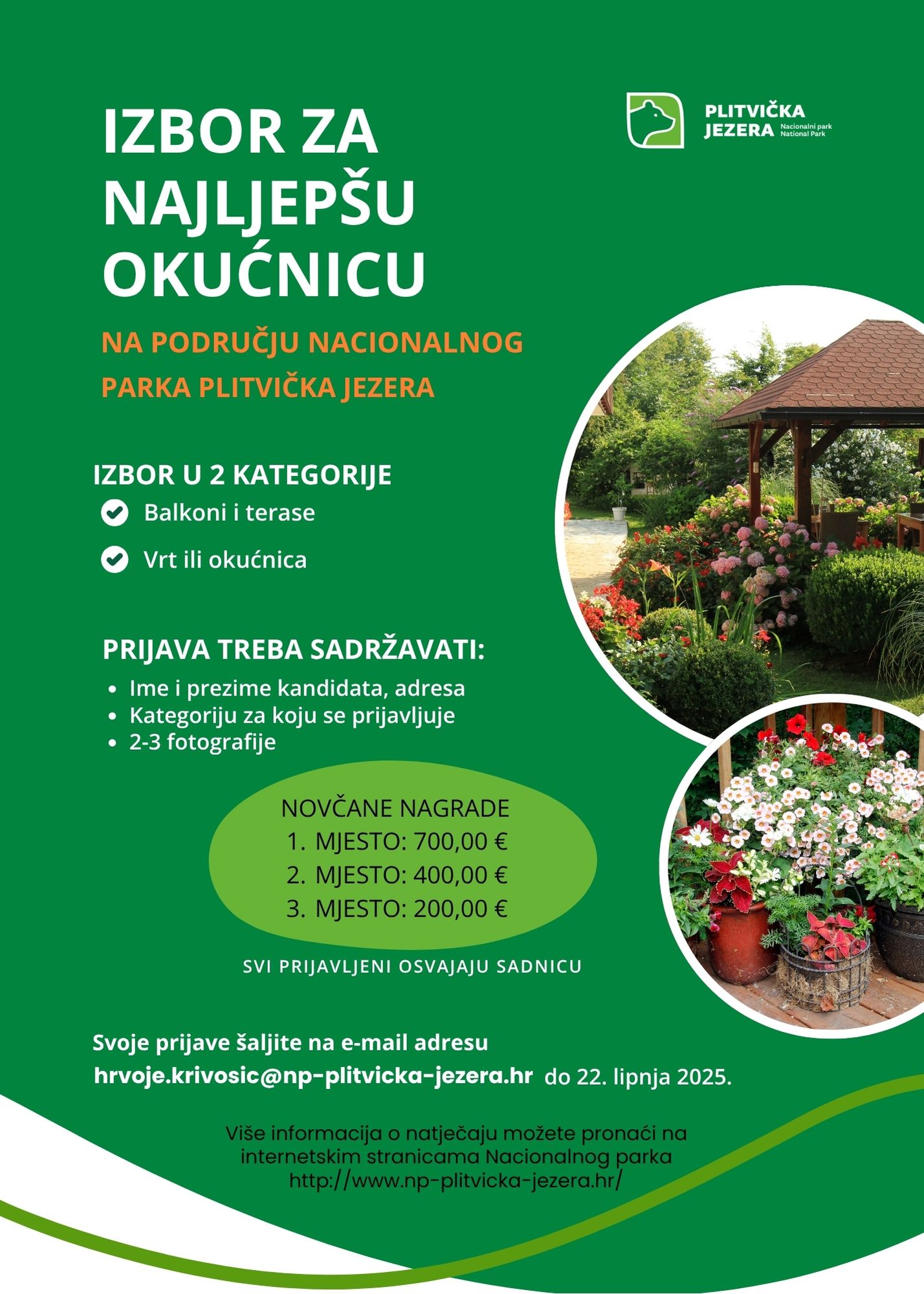 Nacionalni park Plitvička jezera i ove godine organizira natječaj za izbor najljepše okućnice u općinama Plitvička Jezera, Vrhovine, Rakovica i Saborsko.