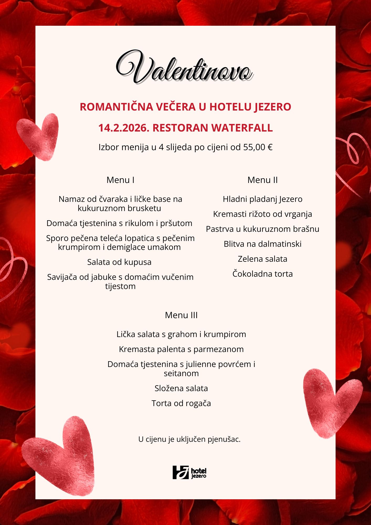 • 14. 2. – svečana romantična večera u 4 slijeda s uključenim pjenušcem